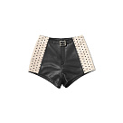 Шорты-120-583 кожа,бежевые вставки с дырочками,короткие,сзади лого и патч,черные