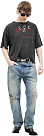 Джинсы-050-403 прямые, дырка и заплатка на коленях. грязные. голубые