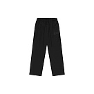The Fear of God Essentials Satin Fleece Lounge Sweatpants in Vintage Black are crafted from heavyweight satin fleece with a wide-leg silhouette and 26 HD-printed graphics on the leg. They feature an elastic waistband with drawstrings, side pockets, and a center-front rubberized label, offering structured comfort and a modern streetwear style.
