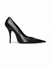 Unusual leather heels by Balenciaga. Design is inspired by fetish footwear: minimal distance between stiletto heels and pointed toecap. Stylish yet practical. Heel measures approximately 11,5 cm.