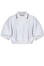 Relaxed Cropped Cinched Polo (White) XS 100% Cotton White