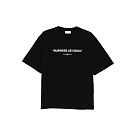 The Business Quote Skate Short Sleeve Tee in black and white from Off-White™ embodies a minimalist design with a conceptual twist. Crafted from premium soft cotton, it offers a relaxed fit and everyday comfort, highlighted by the bold "BUSINESS AS USUAL" slogan printed across the chest in contrasting white. The back remains clean and unadorned, reinforcing the tee's understated aesthetic, while the ribbed crewneck and precise finishing showcase the brand's commitment to quality. Balancing subtle branding with contemporary style, this T-shirt is a versatile piece that effortlessly complements any modern wardrobe.
